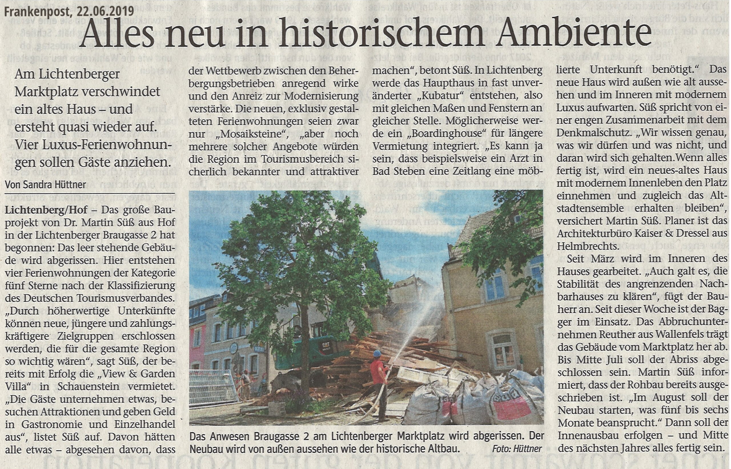 Frankenpost-Artikel zum Abriss des Vorgängergebäudes der Lichtenberg Lodges